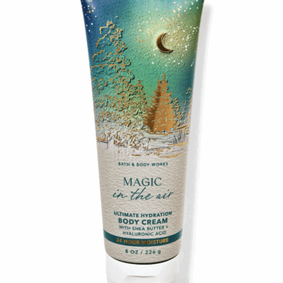 The Bath & Body Works Magic In The Air Body Cream (8 oz) is a luxurious moisturizer that combines a captivating fragrance with rich hydration. Infused with almond flower, sparkling persimmon, white iris, whipped vanilla bourbon, and sandalwood, it offers a delightful scent profile. Formulated with natural essential oils, vitamin E, aloe, shea butter, cocoa butter, and hyaluronic acid, it provides intense hydration for dry skin. Dermatologist-tested and free from parabens and artificial dyes, it ensures a gentle and nourishing experience.