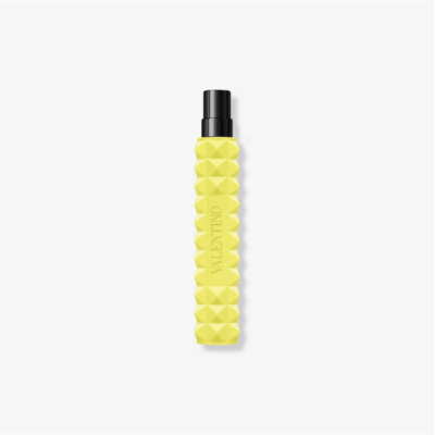 - About the Bottle: Enchased with edginess, the perfume bottle is designed with the iconic Valentino rockstud: inspired by Roman architecture, this small pyramidal shape transforms a bottle from classic to edgy. The bottle is multi-facetted and energized by a yellow fluo signature.